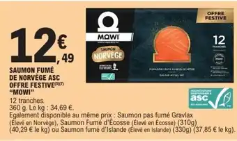Actuellement en offre chez E.Leclerc : MOWI Saumon fumé de norvège asc offre festive ✅ Valable du 16-12 au 27-12.