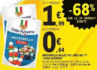 Actuellement en offre chez E.Leclerc : Mozzarella billes 16% mat. gr. casa azzurra ✅ Valable du 7-04 au 18-04.