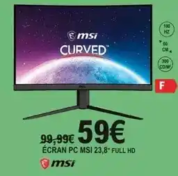 Actuellement en offre chez E.Leclerc : Msi - écran pc msi 23.8 full hd ✅ Valable du 2-01 au 29-01.