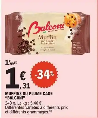 Actuellement en offre chez E.Leclerc : Muffins ou Plume Cake Balconi ✅ Valable du 27-01 au 7-02.
