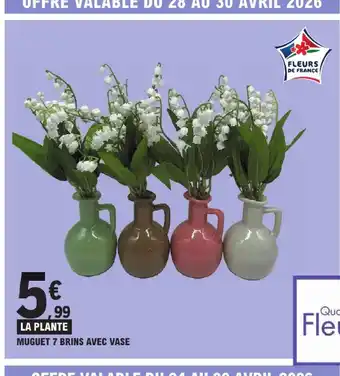 Actuellement en offre chez E.Leclerc : Muguet 7 brins avec vase ✅ Valable du 21-04 au 2-05.