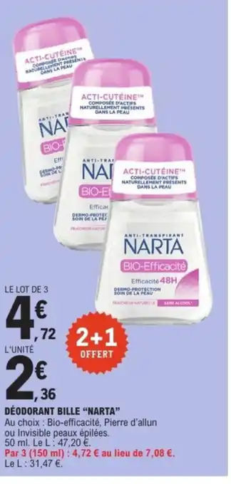 NARTA Déodorant bille offres et promotions en ligne chez E.Leclerc