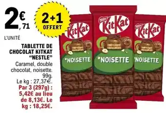Actuellement en offre chez E.Leclerc : Nestlé - tablette de chocolat kitkat ✅ Valable du 2-01 au 11-01.