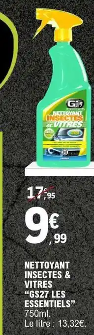 Actuellement en offre chez E.Leclerc : NETTOYANT INSECTES & VITRES “GS27 LES ESSENTIELS” ✅ Valable du 24-02 au 8-03.