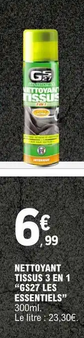 Actuellement en offre chez E.Leclerc : NETTOYANT TISSUS 3 EN 1 “GS27 LES ESSENTIELS” ✅ Valable du 24-02 au 8-03.
