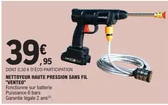 Actuellement en offre chez E.Leclerc : NETTOYEUR HAUTE PRESSION SANS FIL VENTEO ✅ Valable du 17-03 au 28-03.
