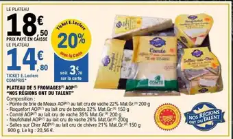 Actuellement en offre chez E.Leclerc : NOS RÉGIONS ONT DU TALENT Plateau de 5 fromages aop ✅ Valable du 23-12 au 3-01.