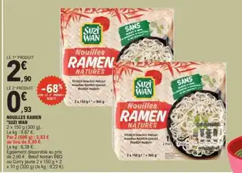 Actuellement en offre chez E.Leclerc : Nouilles Ramen 'Suzi Wan' ✅ Valable du 10-02 au 21-02.