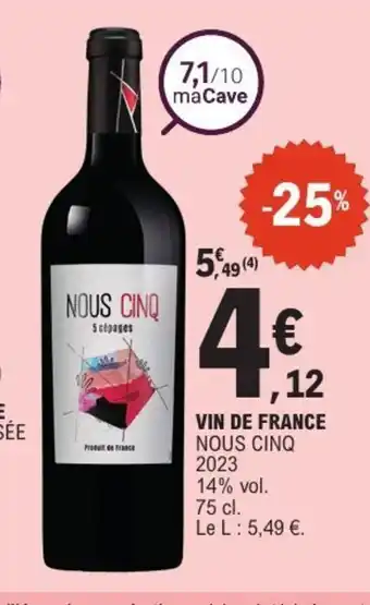 Actuellement en offre chez E.Leclerc : NOUS CINQ 2023 Vin de france ✅ Valable du 14-04 au 25-04.