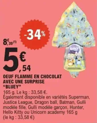 Offre Oeuf flamme en chocolat avec une surprise bluey chez E.Leclerc