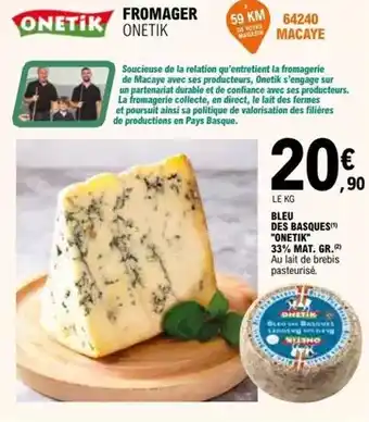 En plus de l'offre Onetik - fromager onetik, E.Leclerc propose une large gamme de produits. Consultez le Catalogue E.Leclerc hebdomadaire pour découvrir les meilleures offres et promotions. En plus de Onetik - fromager onetik, il y a aussi : Brie de meaux a.o.p. christophe fromager, Reblochon fermier a.o.p. christophe fromager & Signatures du fromager tomme de brebis truffée.