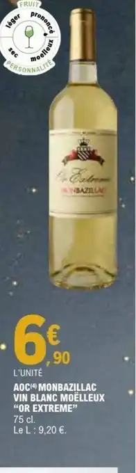 Actuellement en offre chez E.Leclerc : OR EXTREME Aoc monbazillac vin blanc moëlleux ✅ Valable du 23-12 au 3-01.