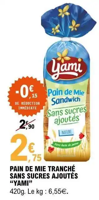 PAIN DE MIE TRANCHÉ SANS SUCRES AJOUTÉS “YAMI” offres et promotions en ligne chez E.Leclerc