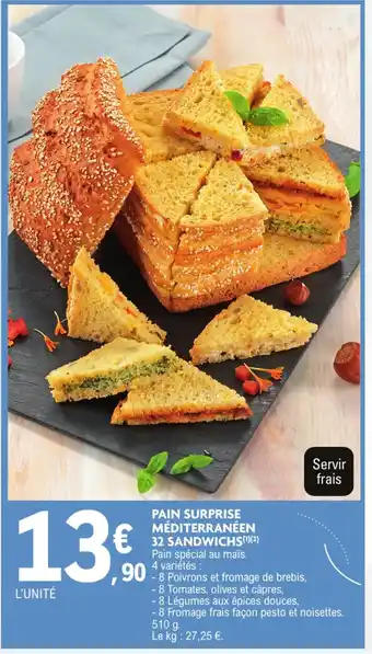 Offre Pain surprise méditerranéen 32 sandwichs chez E.Leclerc