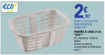 Actuellement en offre chez E.Leclerc : PANIÈRE À LINGE 31,5L “ECO+” ✅ Valable du 13-01 au 24-01.