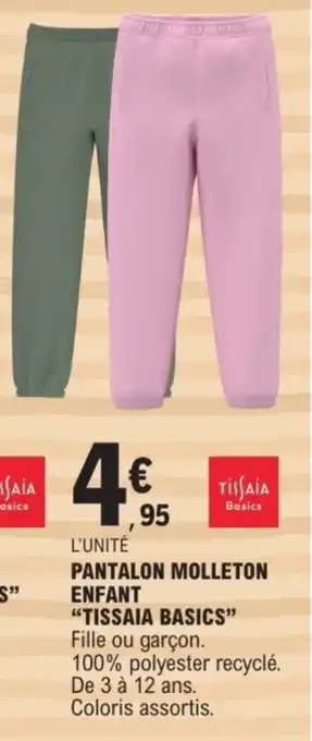 Actuellement en offre chez E.Leclerc : Pantalon molleton enfant tissaia basics ✅ Valable du 21-04 au 3-05.