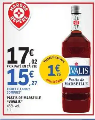 Actuellement en offre chez E.Leclerc : Pastis de Marseille 'Vivalis' ✅ Valable du 3-03 au 14-03.