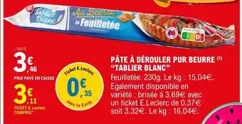 PÂTE À DÉROULER PUR BEURRE 'TABLIER BLANC' : offres et promos E.Leclerc à découvrir