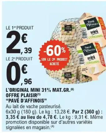 Offre Pavé d'affinois l'original mini 31% mat.gr chez E.Leclerc