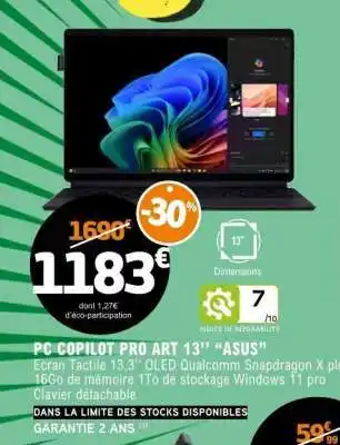 Actuellement en offre chez E.Leclerc : PC COPILOT PRO ART 13’’ “ASUS” ✅ Valable du 7-02 au 6-03.