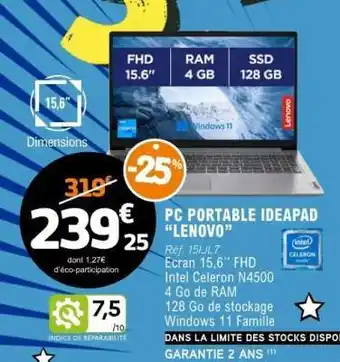 Actuellement en offre chez E.Leclerc : PC PORTABLE IDEAPAD LENOVO ✅ Valable du 7-02 au 6-03.