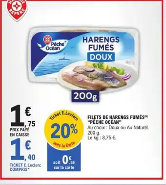 En plus de l'offre PÊCHE OCÉAN Filets de harengs fumés, E.Leclerc propose une large gamme de produits. Consultez le Catalogue E.Leclerc hebdomadaire pour découvrir les meilleures offres et promotions. En plus de PÊCHE OCÉAN Filets de harengs fumés, il y a aussi : PÊCHE OCÉAN Filets de harengs fumés, FILETS DE HARENGS FUMÉS PÊCHE OCÉAN & Filets De Harengs Fumés Delpierre.