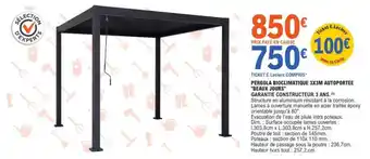 Actuellement en offre chez E.Leclerc : PERGOLA BIOCLIMATIQUE 3X3M AUTOPORTEE BEAUX JOURS ✅ Valable du 17-02 au 28-02.