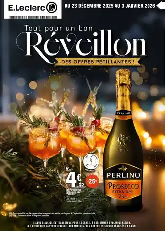 Actuellement en offre chez E.Leclerc : PERLINO Doc prosecco extra dry brut ✅ Valable du 23-12 au 3-01.
