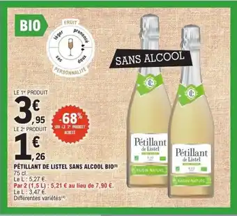 Actuellement en offre chez E.Leclerc : Pétillant de listel sans alcool bio ✅ Valable du 30-12 au 10-01.
