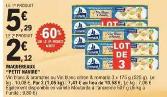 En plus de l'offre PETIT NAVIRE Maquereaux, E.Leclerc propose une large gamme de produits. Consultez le Catalogue E.Leclerc hebdomadaire pour découvrir les meilleures offres et promotions. En plus de PETIT NAVIRE Maquereaux, il y a aussi : PETIT NAVIRE Filets de maquereaux, Filets de maquereaux petit navire & Filets de maquereaux petit navire.