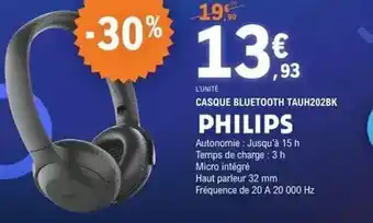Philips - casque bluetooth tauh202bk offres et promotions en ligne chez E.Leclerc