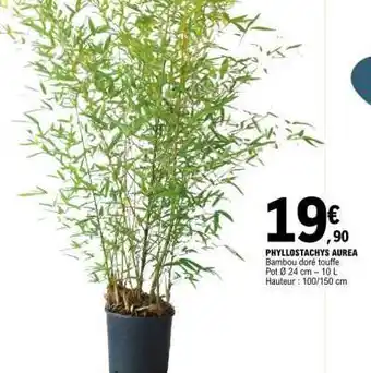 En plus de l'offre PHYLLOSTACHYS AUREA, E.Leclerc propose une large gamme de produits. Consultez le Catalogue E.Leclerc hebdomadaire pour découvrir les meilleures offres et promotions. En plus de PHYLLOSTACHYS AUREA, il y a aussi : E.leclerc - bambio doré phyllostachys aurea, offre 2 & offre 3.