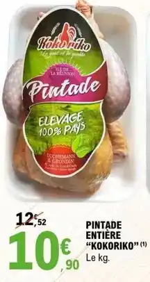 En plus de l'offre Pintade entiere, E.Leclerc propose une large gamme de produits. Consultez le Catalogue E.Leclerc hebdomadaire pour découvrir les meilleures offres et promotions. En plus de Pintade entiere, il y a aussi : PINTADE ENTIÈRE “KOKORIKO”, Pintade chaponne & Porc: poitrine entière avec os.