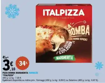 Actuellement en offre chez E.Leclerc : PIZZA BOMBA MARGHERITA SURGELÉE ITALPIZZA ✅ Valable du 30-12 au 10-01.