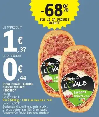 Actuellement en offre chez E.Leclerc : Pizza l'ovale lardons chèvre affiné sodebo ✅ Valable du 30-12 au 10-01.
