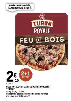 Actuellement en offre chez E.Leclerc : Pizza Royale Cuite au Feu de Bois Surgelée 'Turini' ✅ Valable du 3-02 au 14-02.