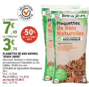 Y a-t-il une promotion sur PLAQUETTES DE BOIS NATUREL BEAUX JOURS la semaine prochaine chez E.Leclerc ?