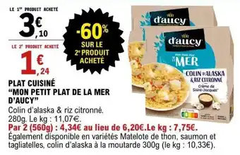 En plus de l'offre PLAT CUISINÉ MON PETIT PLAT DE LA MER “D’AUCY”, E.Leclerc propose une large gamme de produits. Consultez le Catalogue E.Leclerc hebdomadaire pour découvrir les meilleures offres et promotions. En plus de PLAT CUISINÉ MON PETIT PLAT DE LA MER “D’AUCY”, il y a aussi : Carrefour - plat cuisiné, Plat & Plat.