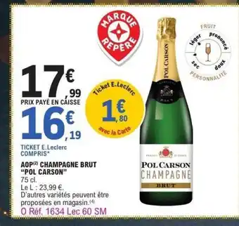 POL CARSON Aop champagne brut offres et promotions en ligne chez E.Leclerc