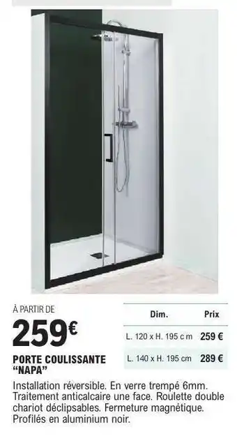 Actuellement en offre chez E.Leclerc : PORTE COULISSANTE “NAPA” ✅ Valable du 6-01 au 7-02.