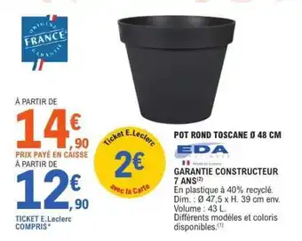 Actuellement en offre chez E.Leclerc : POT ROND TOSCANE Ø 48 CM ✅ Valable du 17-02 au 28-02.