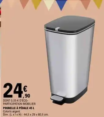 Offre POUBELLE À PÉDALE 45 L chez E.Leclerc