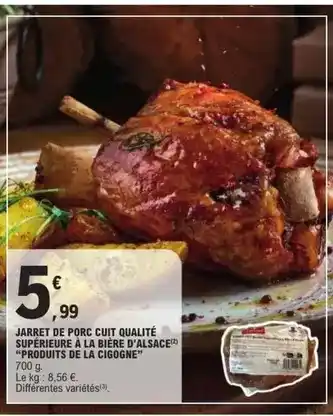 Offre Produits de la cigogne - jarret de porc cuit qualite superieur à la biere d'alsace chez E.Leclerc