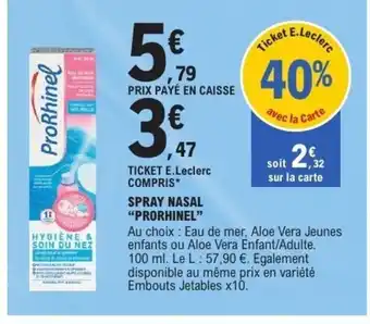 Offre PRORHINEL Spray nasal chez E.Leclerc