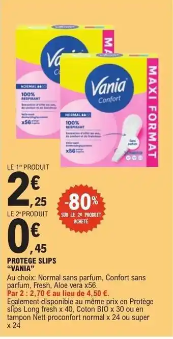 Actuellement en offre chez E.Leclerc : Protège Slips Vania ✅ Valable du 10-02 au 21-02.