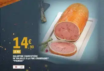 Actuellement en offre chez E.Leclerc : PRUNIER Galantine charcutière de volaille à la fine champagne ✅ Valable du 16-12 au 27-12.