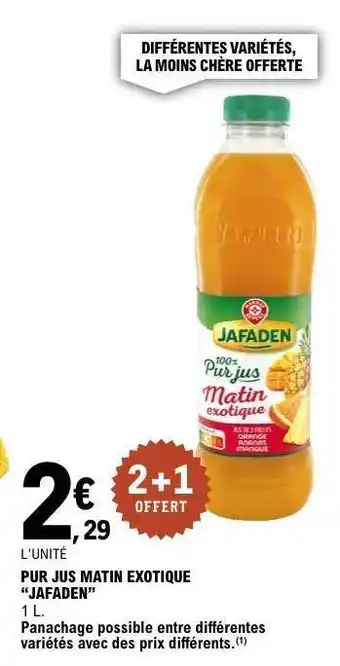 Actuellement en offre chez E.Leclerc : PUR JUS MATIN EXOTIQUE 'JAFADEN' ✅ Valable du 3-02 au 14-02.