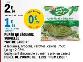 PURÉE DE LÉGUMES SURGELÉE “NOTRE JARDIN” offres et promotions en ligne chez E.Leclerc