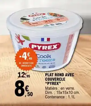 Offre Pyrex - plat rond avec couvercle chez E.Leclerc