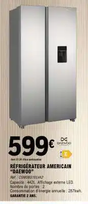 Actuellement en offre chez E.Leclerc : RÉFRIGÉRATEUR AMERICAIN DAEWOO ✅ Valable du 24-02 au 8-03.